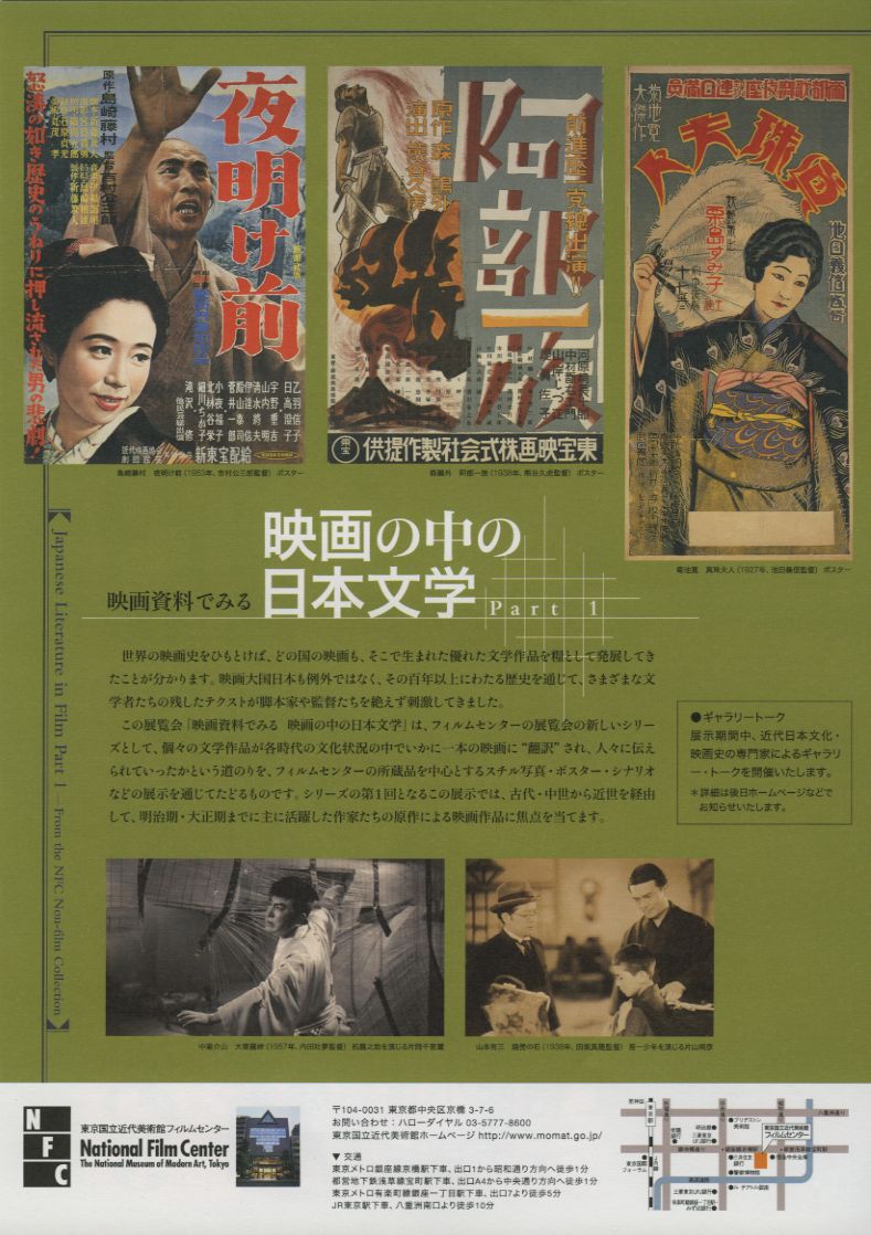 このフィルムセンターの7F展示室では毎回、何ヶ月かごとにテーマを変えて楽しむ展示もありました。今期の特集は『映画の中の日本文学』。